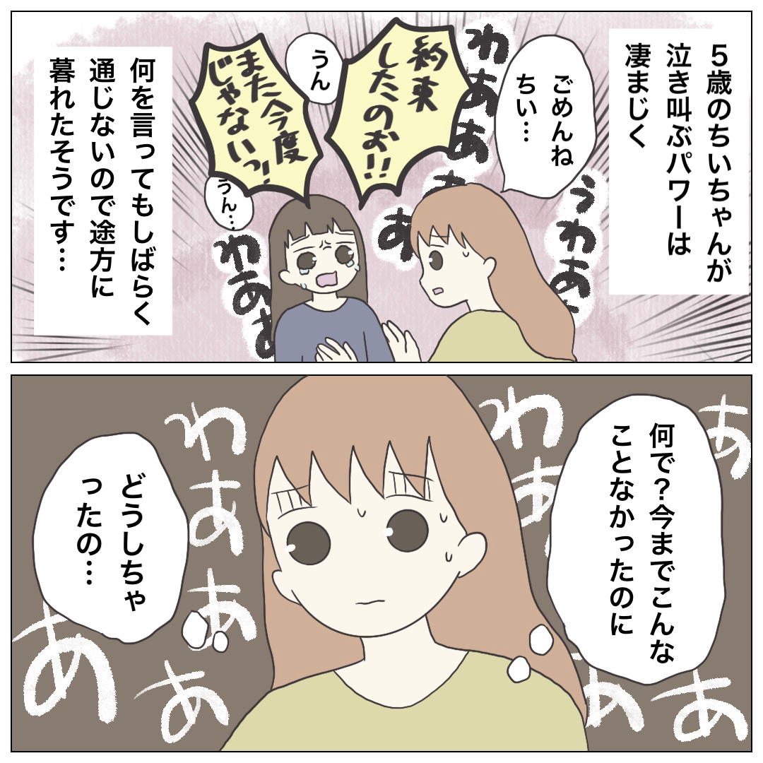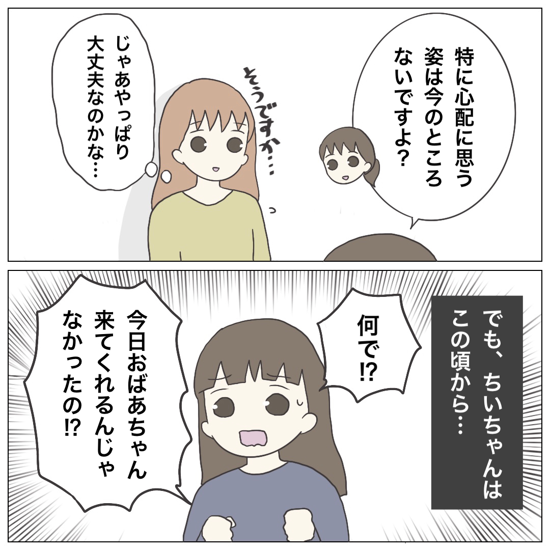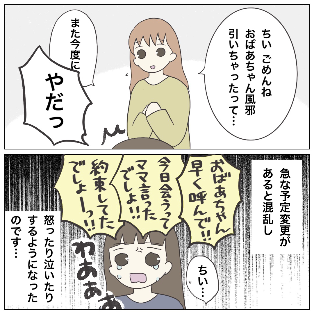 今までおとなしい性格だったちいちゃんですが、この頃から急な予定の変更や突発的な出来事に対して戸惑ったり、混乱する姿が目立っていったそうです…