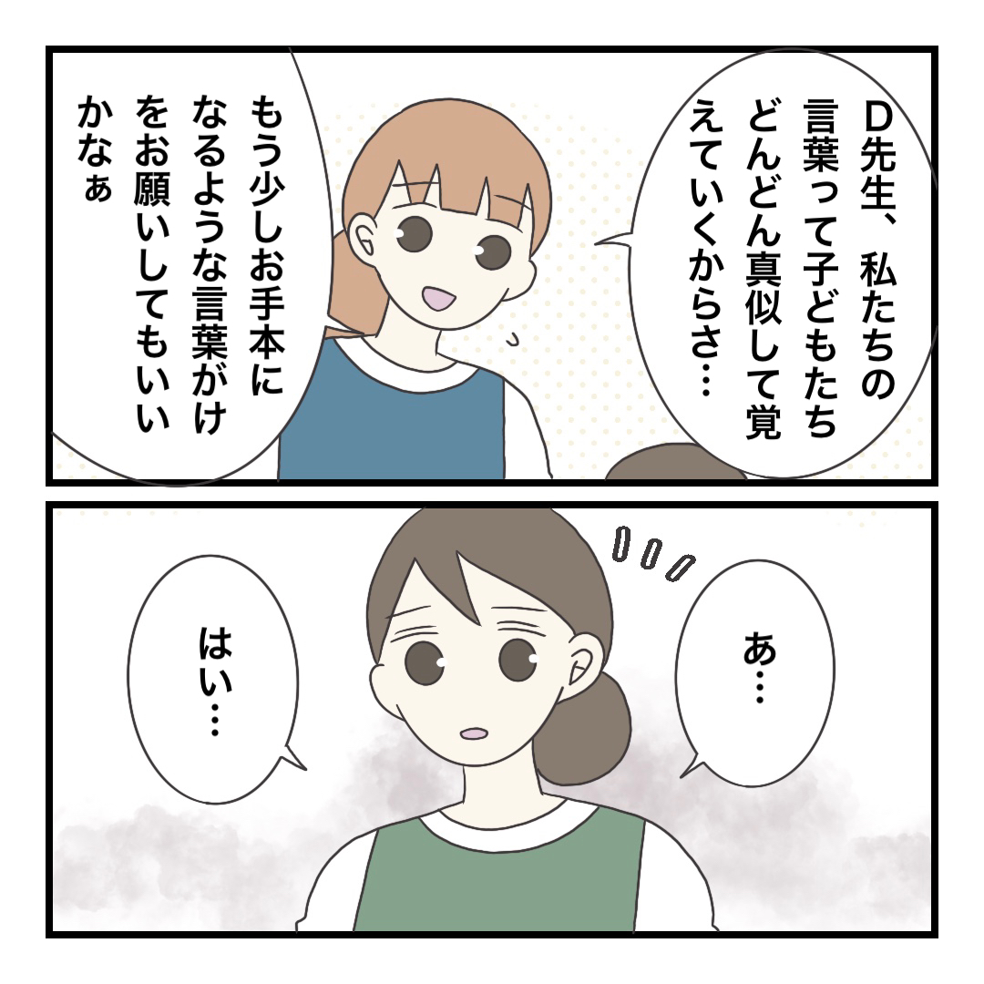 D先生にはさらっと明るく(?)、こうしてくれたら嬉しいなーみたいな感じで…できるだけ嫌な思いをしないように気をつけてたんですけどね。