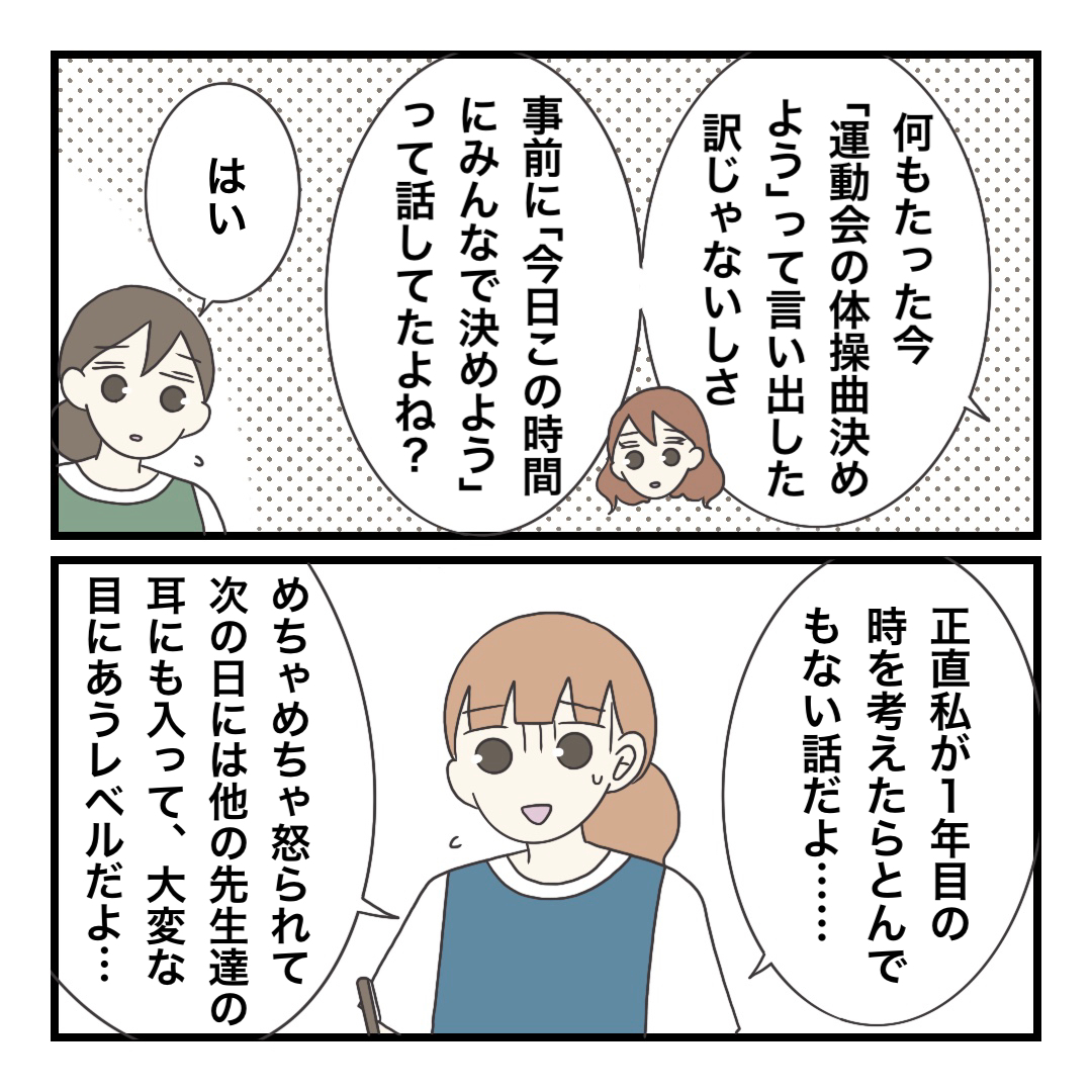 「この日のクラス会議で運動会の時に踊る2歳児さんの体操曲、決めちゃおっかー^^それぞれ考えといてね〜」ってな感じで事前に話してました。
