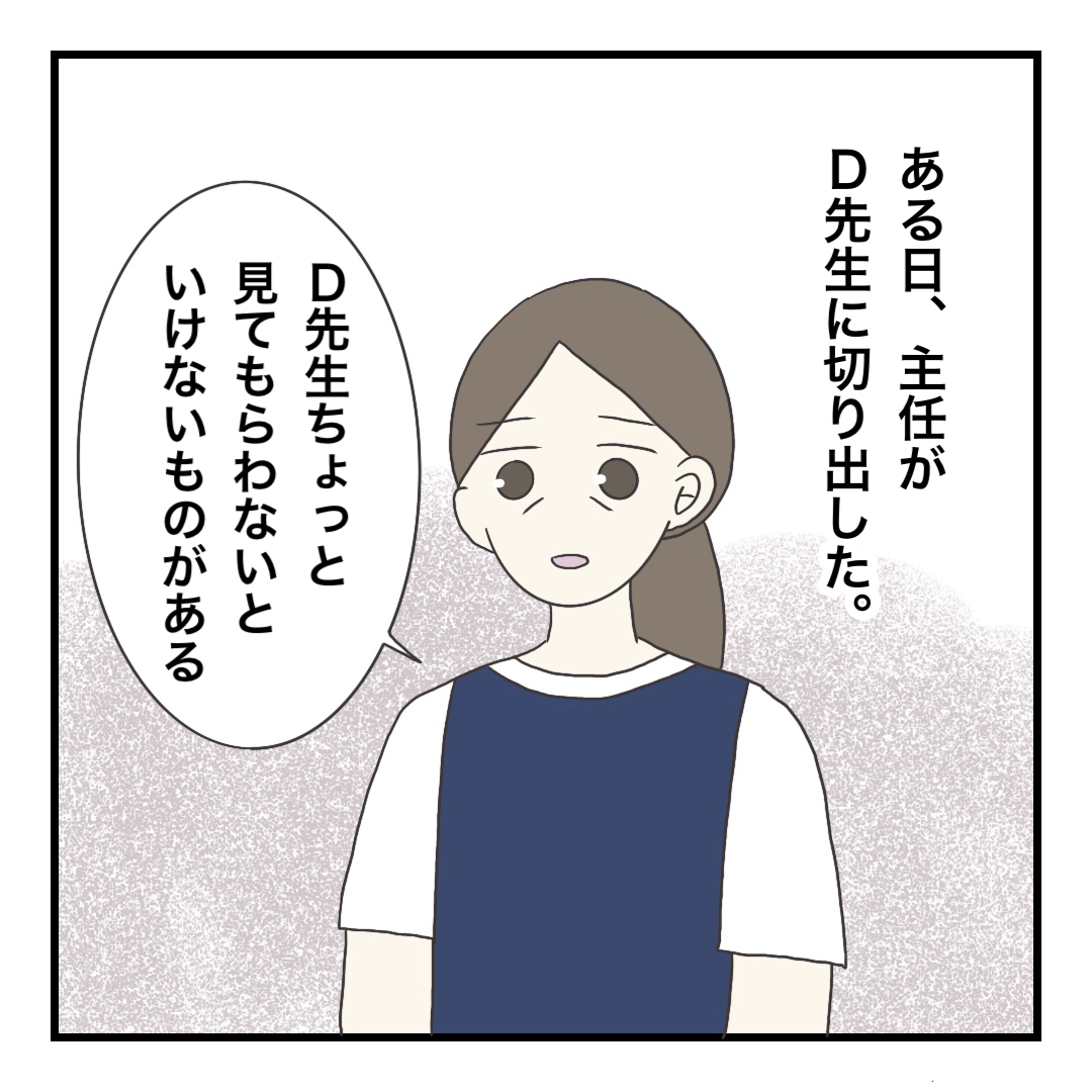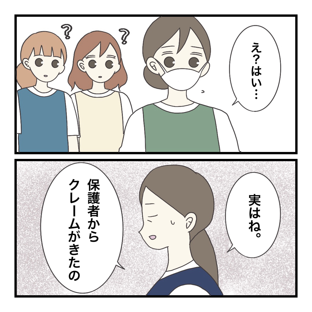ある日、保護者から匿名でクレームがきてしまいました。さすがに主任も「D先生ちょっと」って感じで話してましたね。
