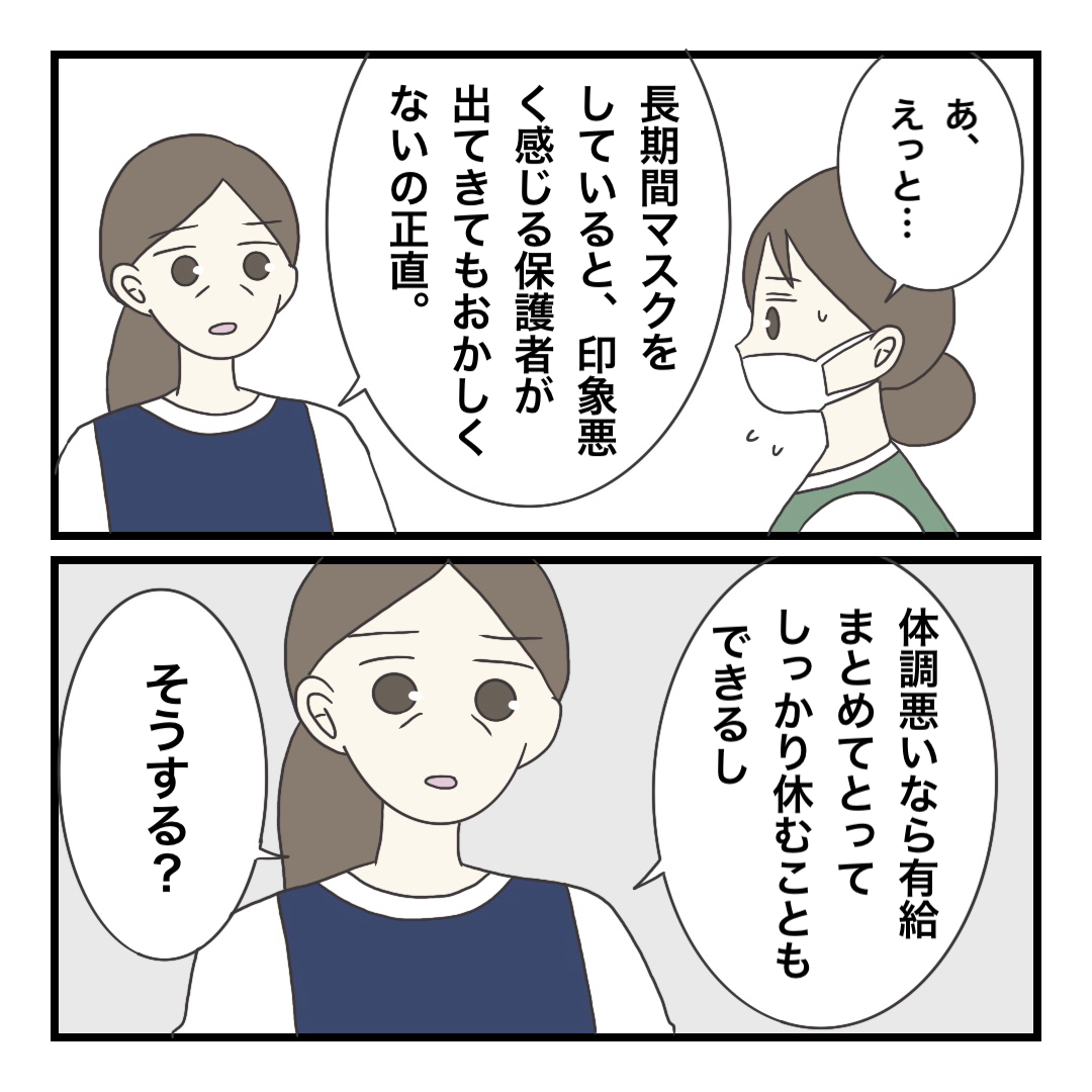 当時はまだマスク生活ではなかったですし、感染症が流行ってない限りは保育士がマスクをつけるってあんまりなかったので(この園ではですよ^^)、