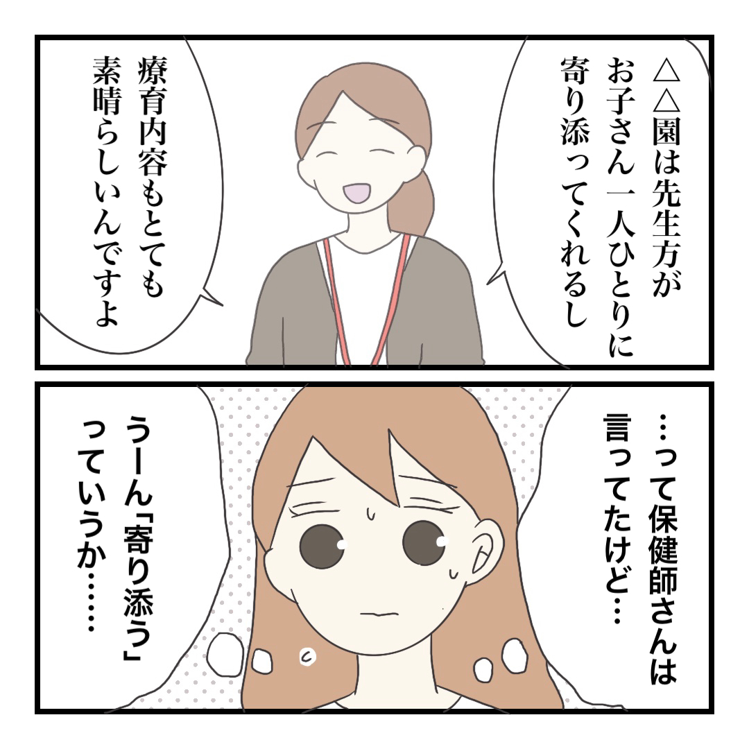 フォロワーさんから頂いたお話の第2話でした。保健師さんから「あの園はおすすめですよ!」と教えてもらった上で見学に行ったらこの状況…