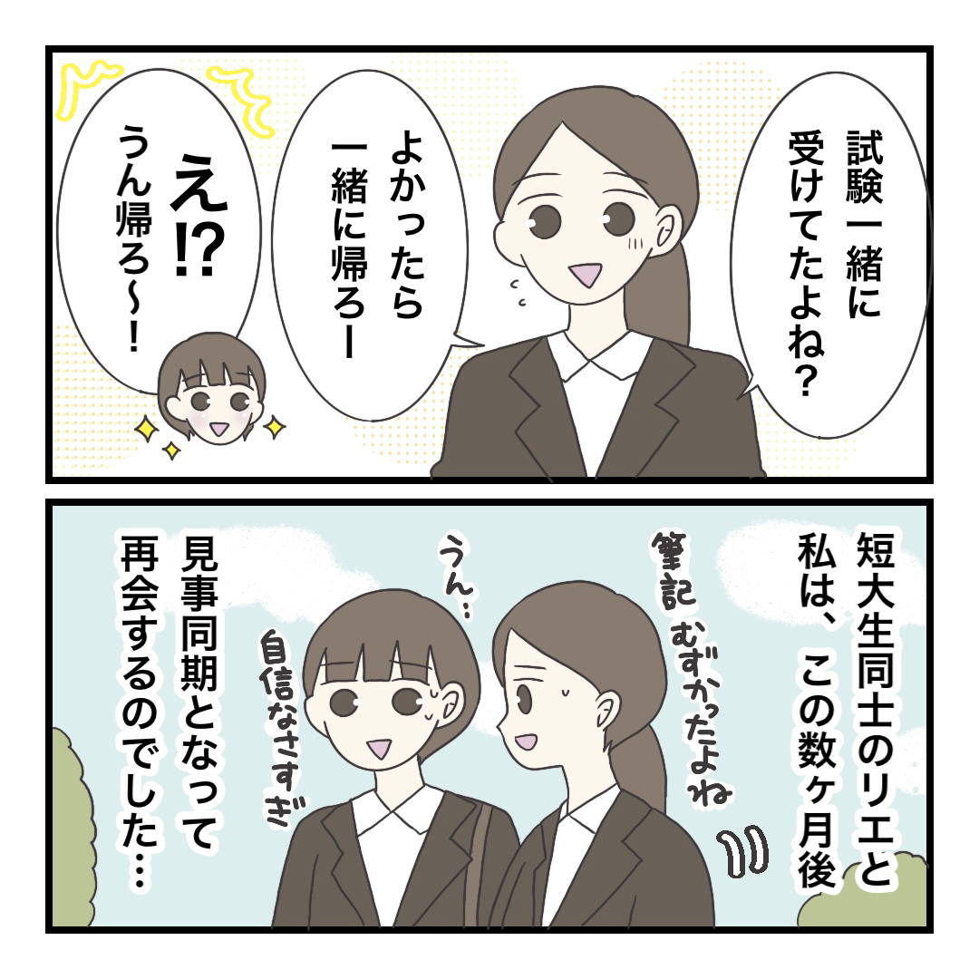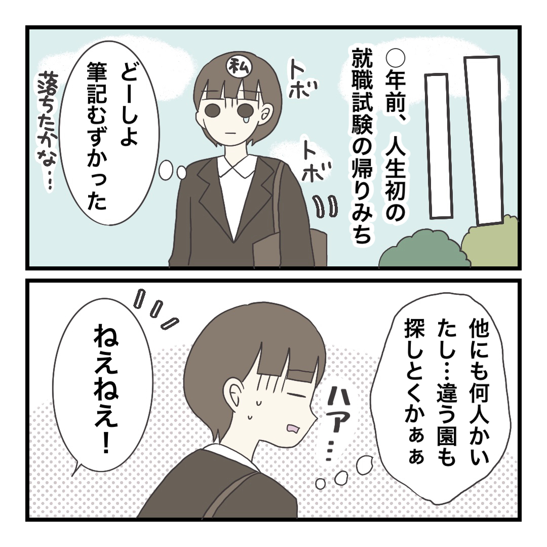 就職試験は他にも何人か受けてる子がいて、そんな中ふたりで一緒に帰って、お互い採用されて…って感じでした^^