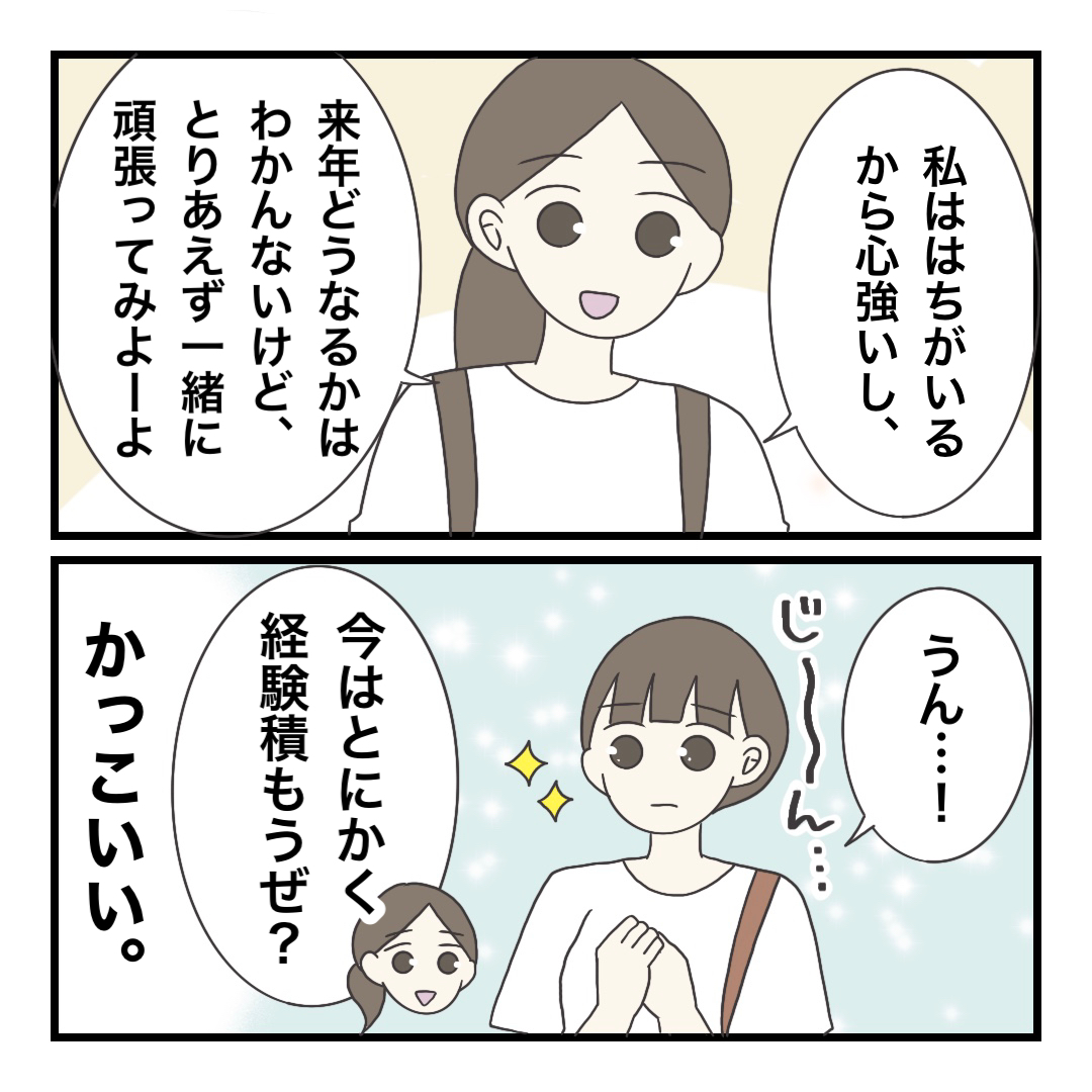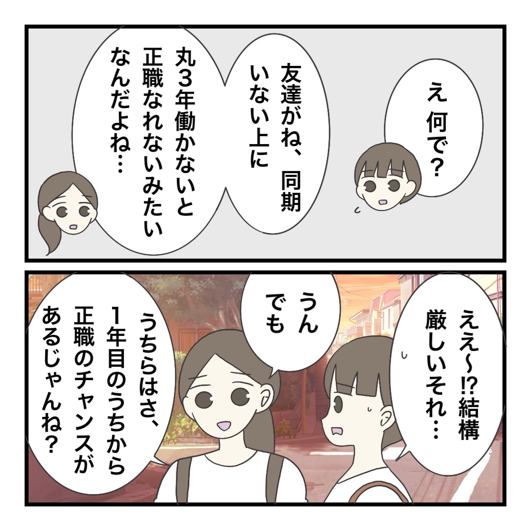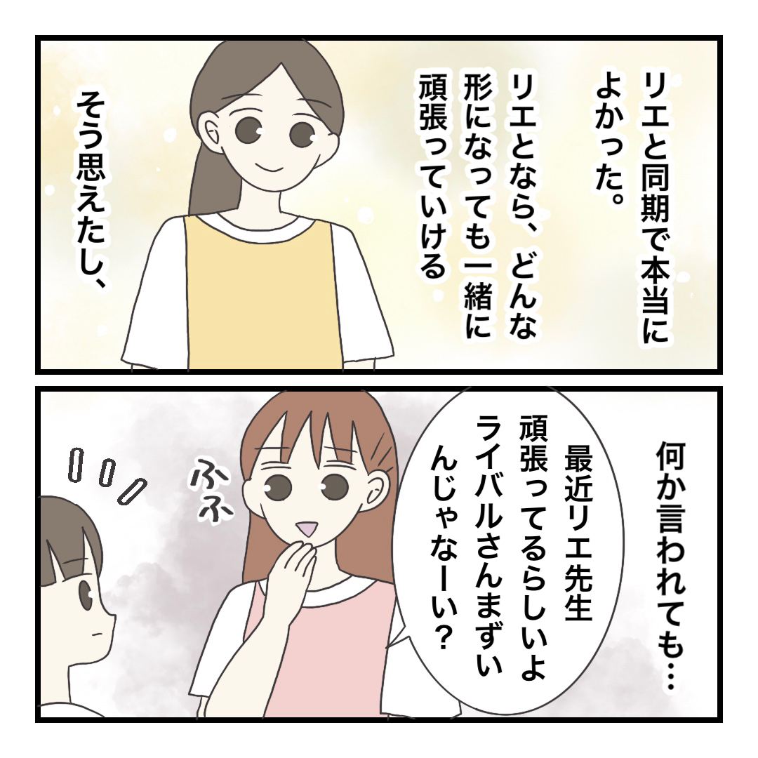 リエは頼もしくて、「どっちかが正職でどっちかが臨時だとしても同期には変わらないし、一緒に頑張ってみよーよ!恨みっこなしでいいじゃん!」って感じでした。