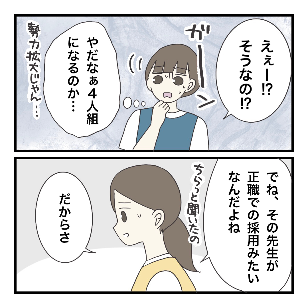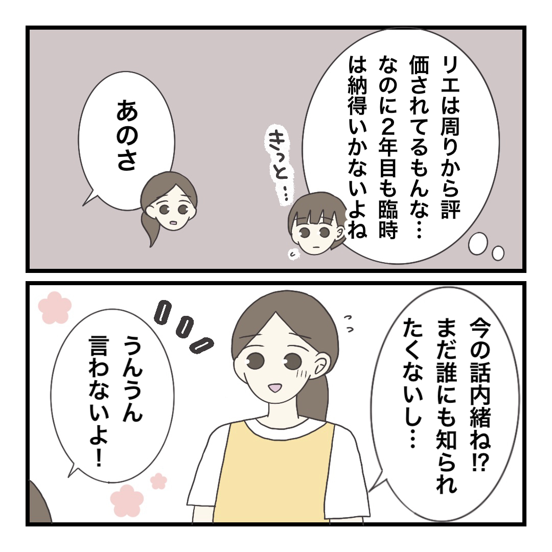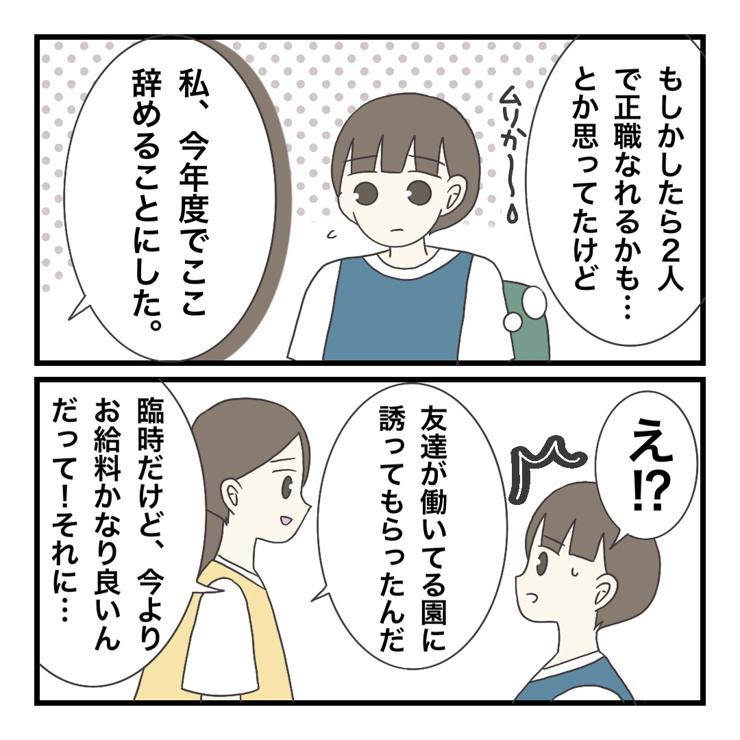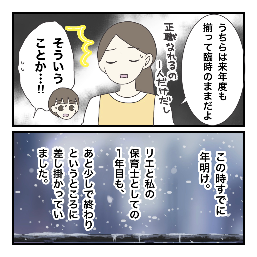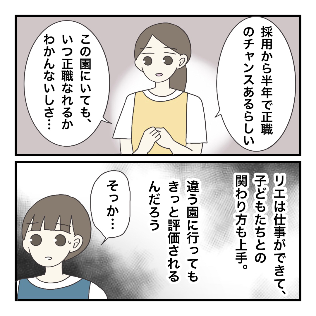 リエは「来年度も臨時のままなら」と、すでに要領よく違う園に移ることを決めていて…